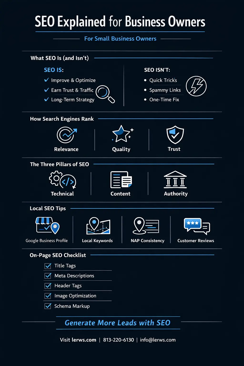 Search engine optimization (SEO) is the ongoing process of improving your website so search engines can (1) find it, (2) understand it, and (3) trust it enough to recommend it to searchers. When it works, SEO becomes a compounding asset: pages you improve today can keep bringing customers for months or years.